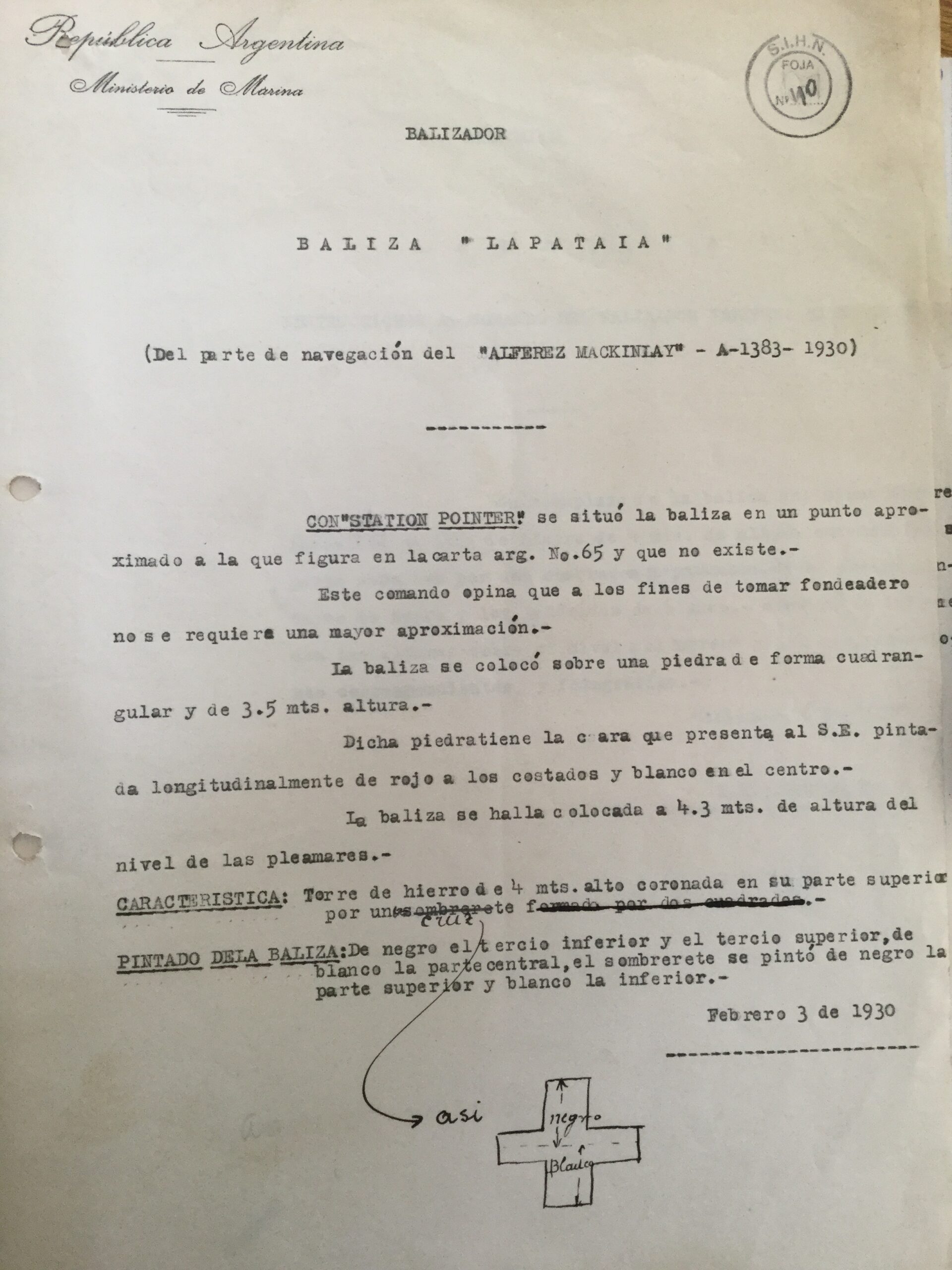 Servicio de Hidrografía Naval, Archivo Baliza Lapataia. Balizamiento.